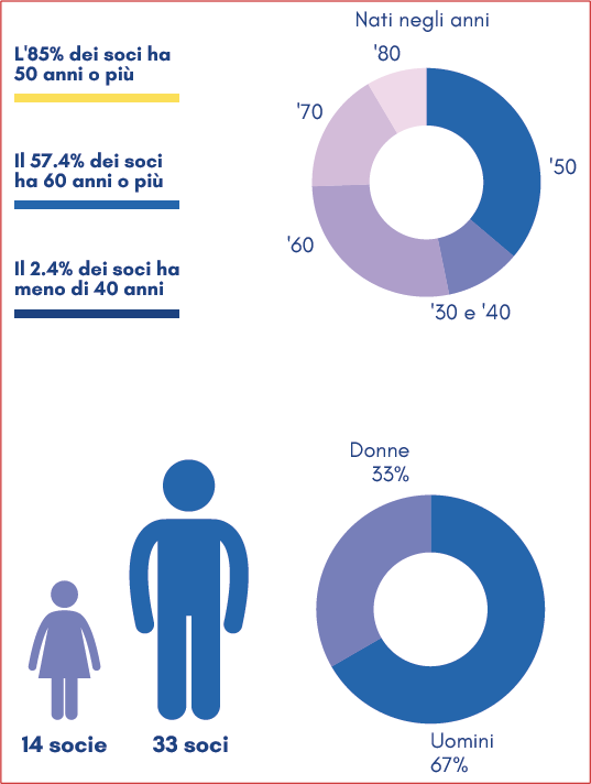 L’acquisizione di soci tra i 40 e 55 anni assicura al Club, negli anni, un adeguato ricambio della dirigenza.