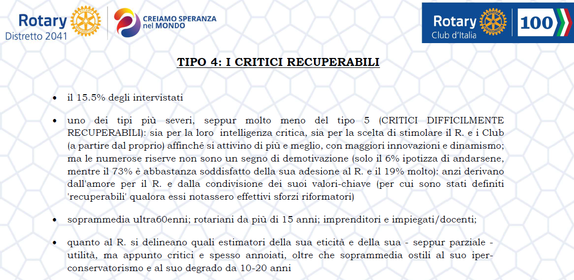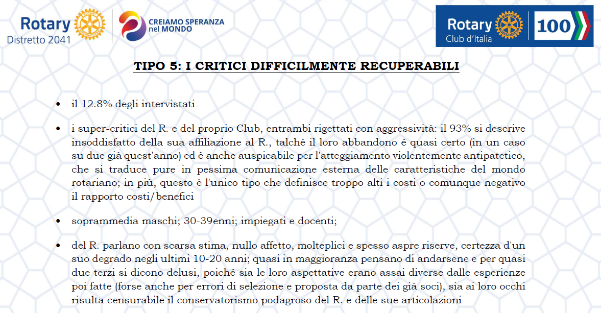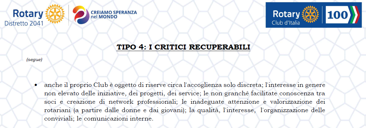 cercando di intercettare il disagio dei CRITICI DIFFICILMENTE RECUPERABILI per migliorare la loro percezione negativa nei confronti del R.I. e del loro Club.